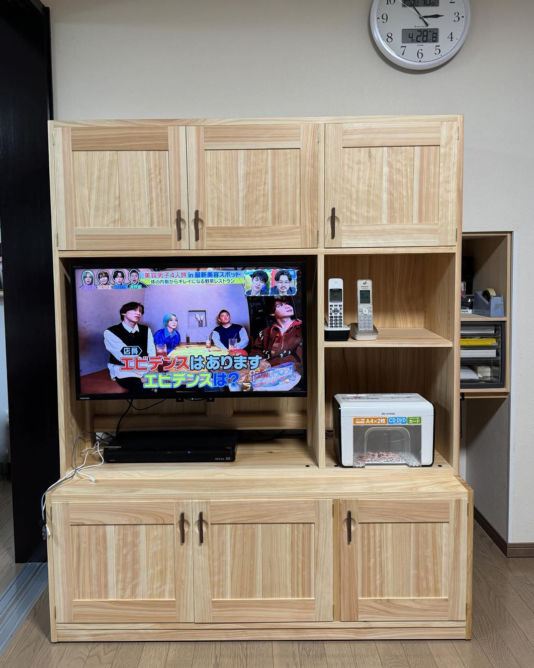 テレビが自由に角度をつけて鑑賞出来る事とキャビネットにスマートに収納できること。