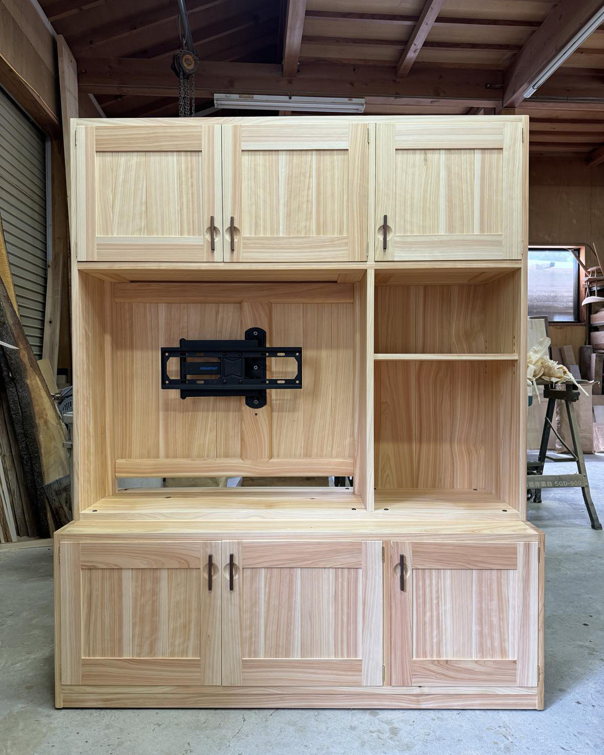 M様との打ち合わせを重ねる事で、天板をいかす事より、リビングの収納とメインの家具として再生させる